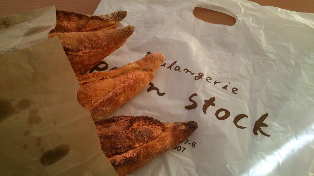 パンストックの明太フランスは他のパンとは一線を画し、レジの隣の棚に誇らしげに並んでいます。